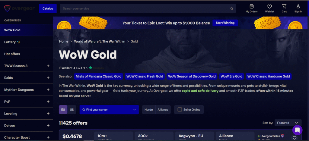 Overgear – is a platform that sells WoW gold for all versions of World of Warcraft. Players simply choose the amount they need and place on order.
